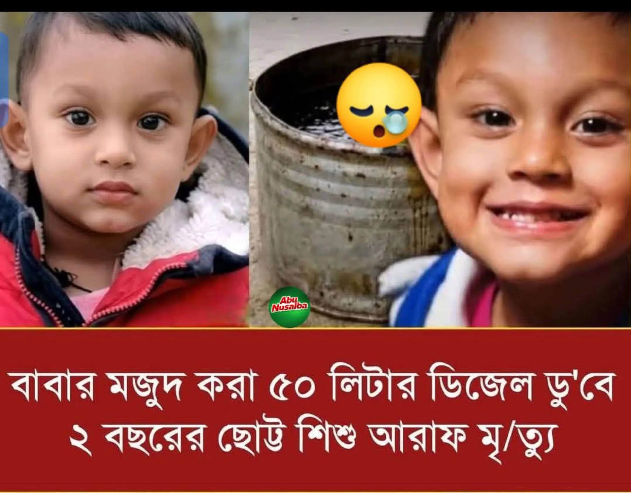 ২ বছরের আরাফ ডিজেলের ড্রামে পড়ে প্রাণ হারাল