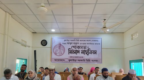 রুবেল বখস পাভেল: জেলা প্রতিনিধি মৌলভীবাজার। মৌলভীবাজারের কুলাউড়া সরকারি ডিগ্রি কলেজের সদ্য প্রয়াত ভারপ্রাপ্ত অধ্যক্ষ মো. আব্দুল হান্নানের স্মরণে মিলাদ ও দোয়া মাহফিল অনুষ্ঠিত হয়েছে। সোমবার (২৪ ফেব্রুয়ারি)…